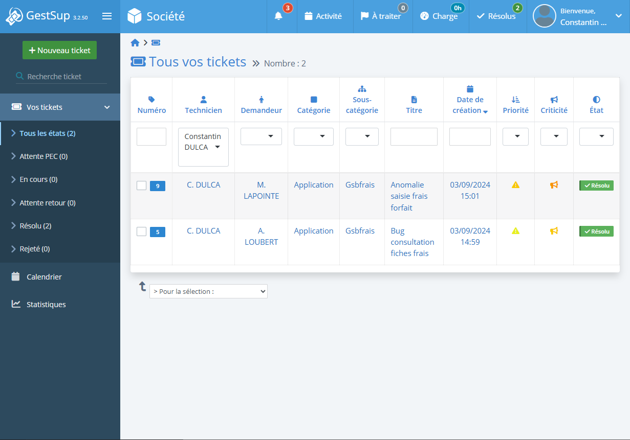 Le projet se déroule en trois étapes. Premièrement, la gestion des tickets : nous corrigeons les problèmes existants signalés par des employés fictifs sur une plateforme nommée GestSup. Deuxièmement, nous ajoutons de nouvelles fonctionnalités à l'application. Enfin, nous déployons le site sur un serveur distant afin de le rendre accessible en ligne.